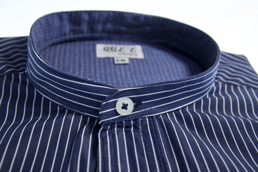 Camisa slim fit cuello Mao - Marino rayas