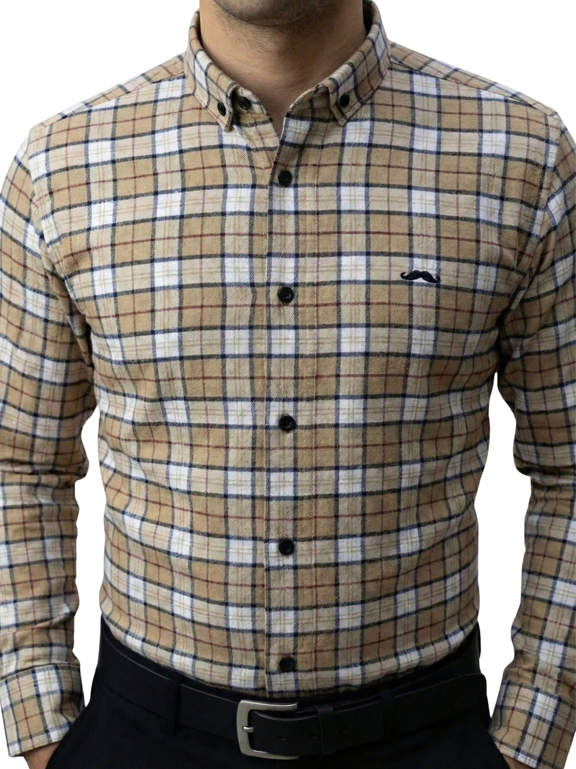 Camisa de franela slim fit - Cuadro beige