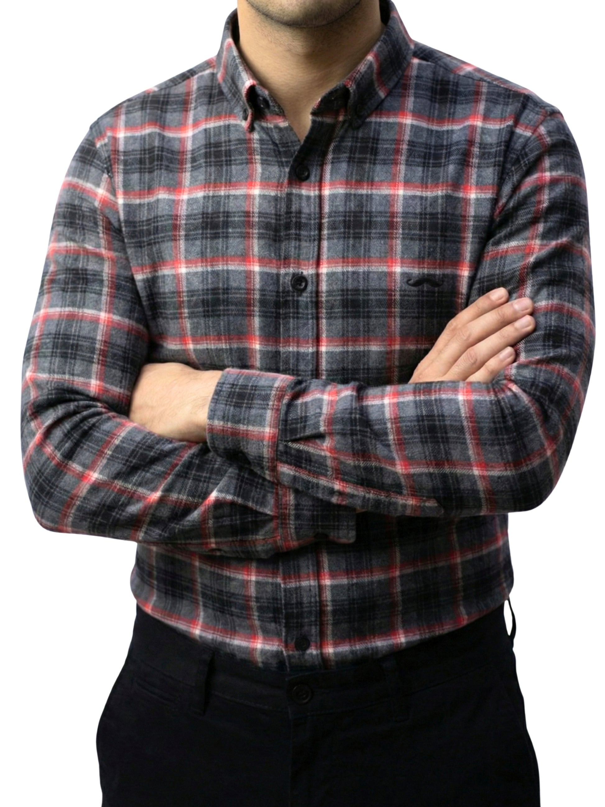 Camisa de franela slim fit - Cuadro gris